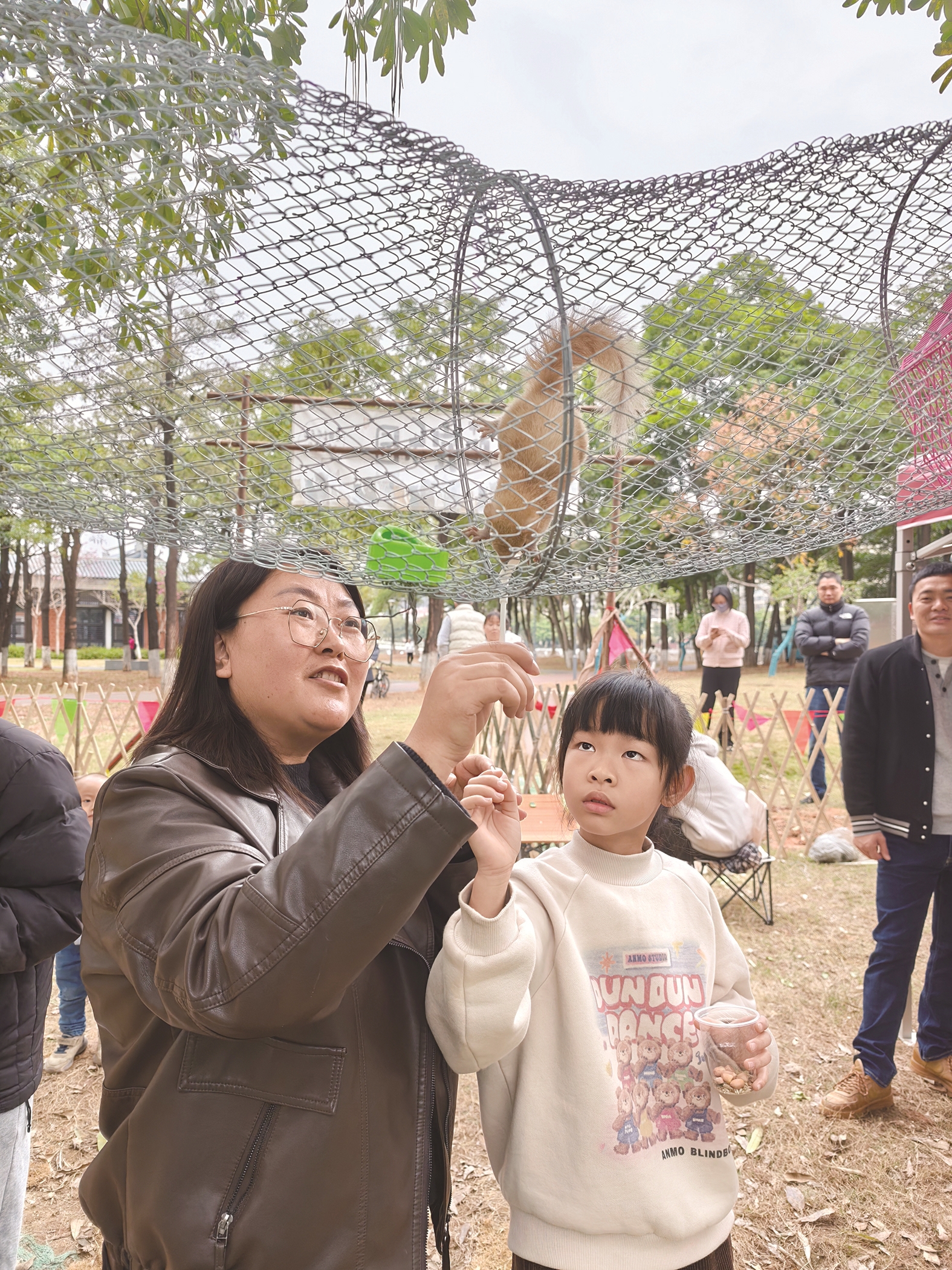 藏于林间的“苏林蹦乐园”活力四射。孩子们在3.5米高空穿越项目中挑战自我,在巨大蹦网上尽情攀爬跳跃,于自然怀抱中释放压力。一旁的“萌宠乐园”温情满溢。兔子、松鼠、鸽子、仓鼠等小动物吸引着孩子们的目光。工作人员张先生介绍,游客购票即可获得喂养包,内含胡萝卜、青菜、鸽粮,与小动物零距离互动。张先生还表示,乐园还将陆续增加小香猪、芦丁鸡等更多萌宠。